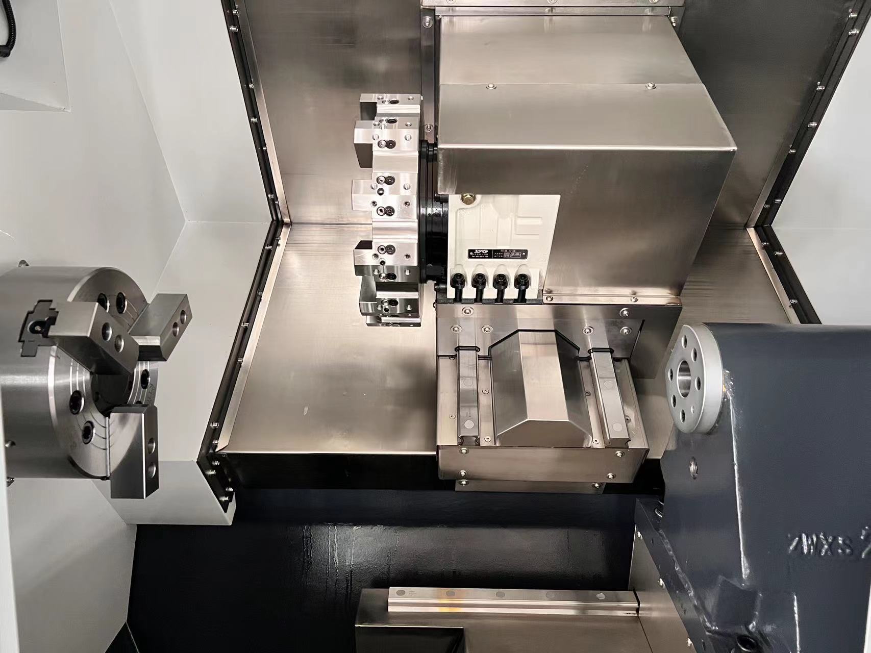 This machine tool can process shaft and disc parts, turn internal and external surfaces of threads, arcs, cones, and rotating bodies, and efficiently, massively, and accurately process rotating body parts.